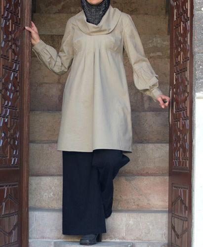 Tunique sophistiquée et élégante avec col évasé. 100 % coton. Lavage machine.