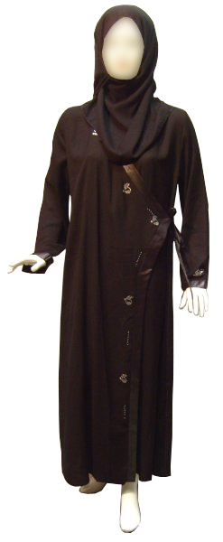 Abaya noire ouverte Khadija avec décorations brillantes sur le devant et le dos. Fabrication syrienne.