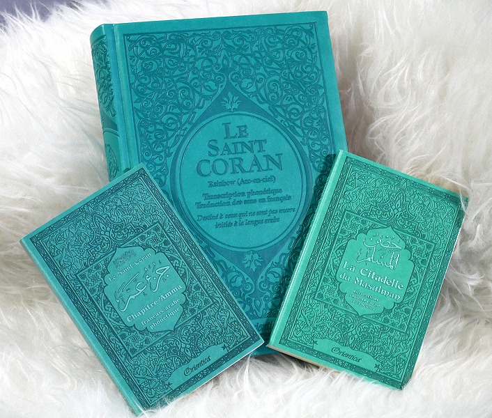 Pack Cadeau Musulman Vert-Bleu avec 3 livres en français/arabe/phonétique : Le Saint Coran, Chapitre Amma (Petites sourates) et La Citadelle du Musulman (Invocations) - REF. 28473 (29.90 €)