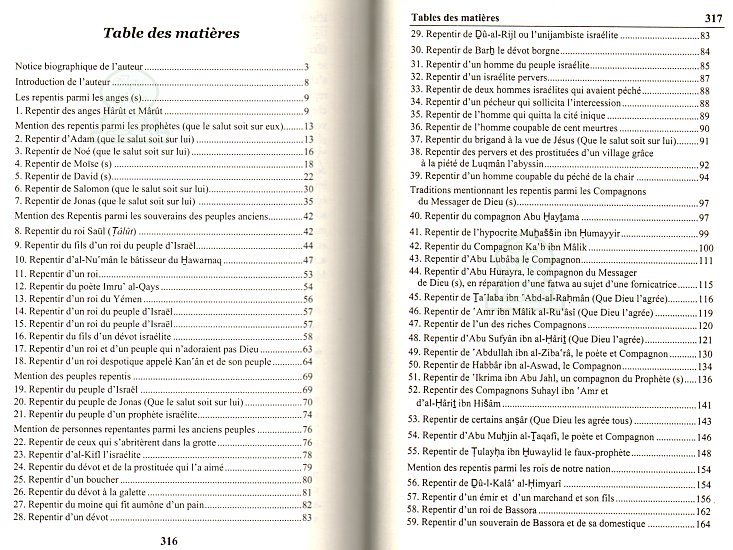 Conte les récits des repentis parmi les anciens depuis l'époque d'Adam jusqu'au septième siècle de l'hégire.