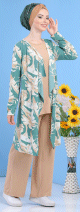 Ensemble décontracté 2 pièces tunique et gilet cousu + pantalon de couleur beige et vert amande - REF. 30567 (49.00 €)