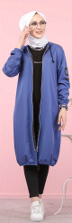Veste Sweat zippé long et ample avec capuche (Vetement femme voilée) - Couleur Bleu - REF. 33187 (29.90 €)