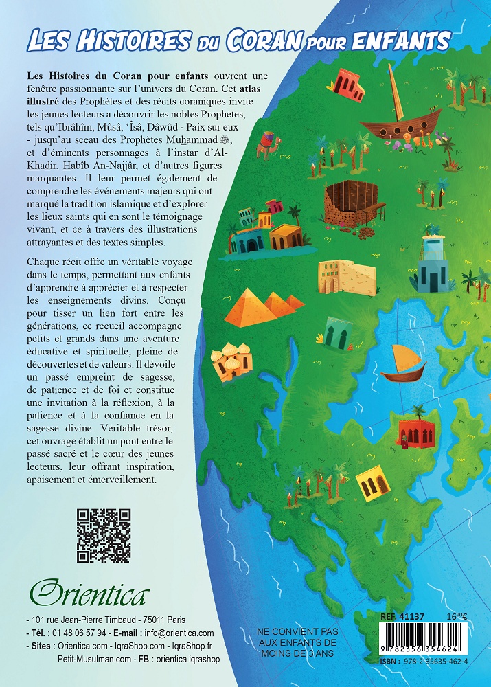 Les Histoires du Coran pour enfants ouvrent une fenêtre passionnante sur l’univers du Coran. Cet atlas illustré des Prophètes et des récits coraniques invite les jeunes lecteurs à découvrir les nobles Prophètes, tels qu’Ibrâhîm, Mûsâ, ‘Îsâ, Dâwûd — paix sur eux — jusqu’au sceau des Prophètes Muhammad (ﷺ), ainsi que d’éminents personnages comme Al-Khadir, Habîb An-Najjâr et d’autres figures marquantes.